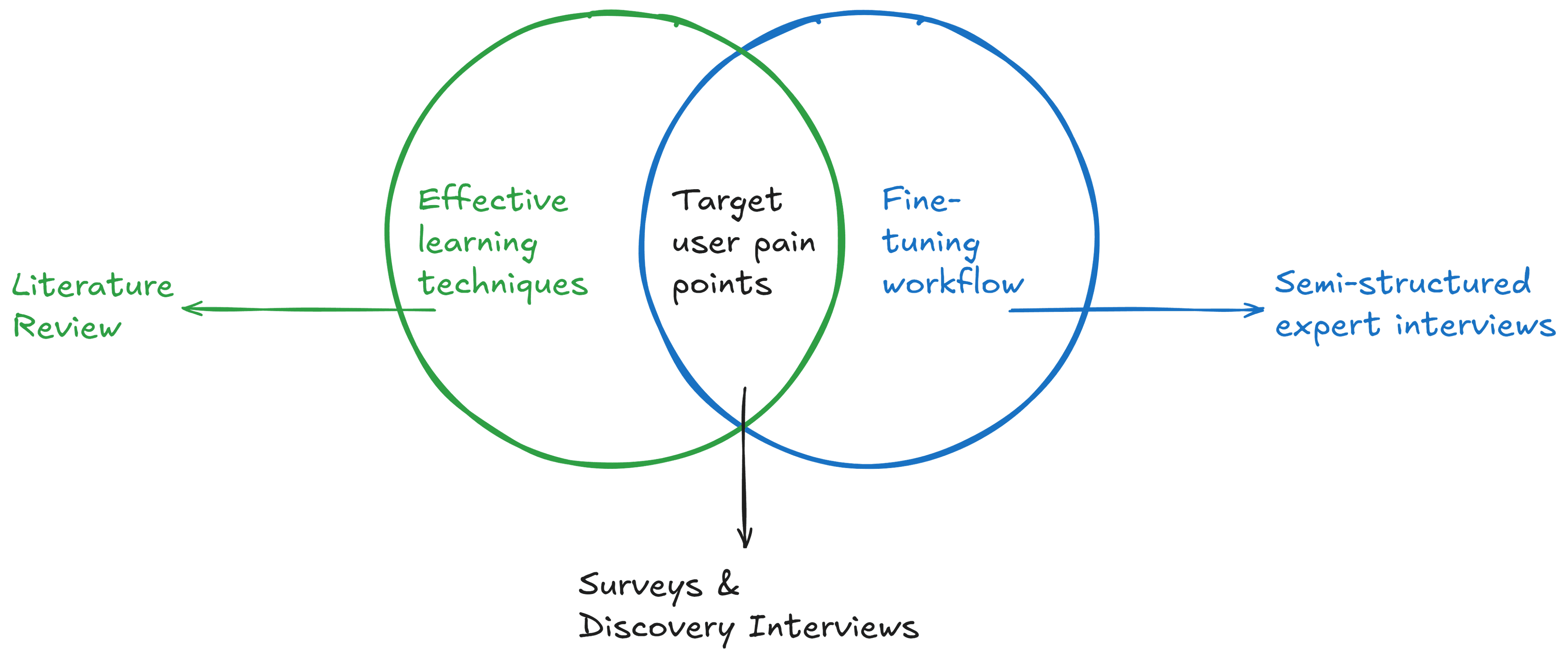 To cover both the technical and human aspects of fine-tuning, research was split between expert knowledge, user perspectives, and proven learning techniques.
